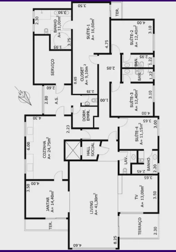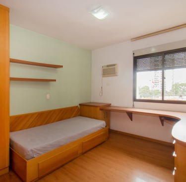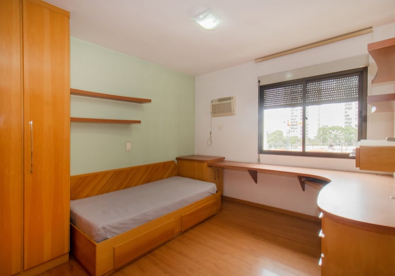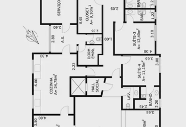 São 4 suítes espaçosas, incluindo uma suíte master com closet, que garante privacidade e comodidade excepcional. Um dos quartos de serviço, aberto para a área intima foi estratégicamente convertido em um escritório prático acrescentando ambiente ideal para estudos e trabalho em casa.